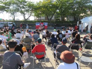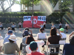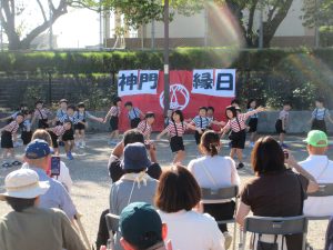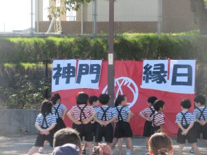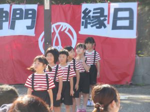 9月27日(土)に、たいしゃ保育園のぞう組が、神門通りで行われた『神門縁日』においてダンスを披露しました。直前まで子どもたちは「ドキドキする」と緊張していましたが、曲がかかると堂々としていました。心を一つにして笑顔を届けることができました。