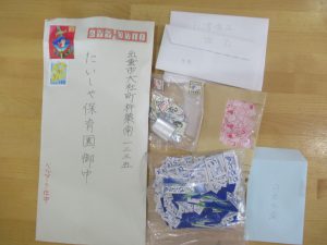 たいしゃ保育園では、保育活動の充実のために、ベルマークを収集しております。このたび、出雲市在住の荒木紀世子様より、たくさんのベルマークを頂きました。この場を借りてお礼申しあげます。ありがとうございます。