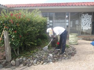 9月22日(月)~10月3日(金)に、特別養護老人ホーム湖水苑において、島根県立出雲養護学校高等部(3年生:1名)が環境整備の実習に来苑して下さいました。主に施設内の清掃や修繕を行ってもらっています。また、合間に特技のイラストを廊下展示用に作成してもらっています。笑顔で真面目に取り組んで下さり、入居者の皆様も気持ちよく過ごして頂ける事かと思います。ありがとうございました。