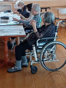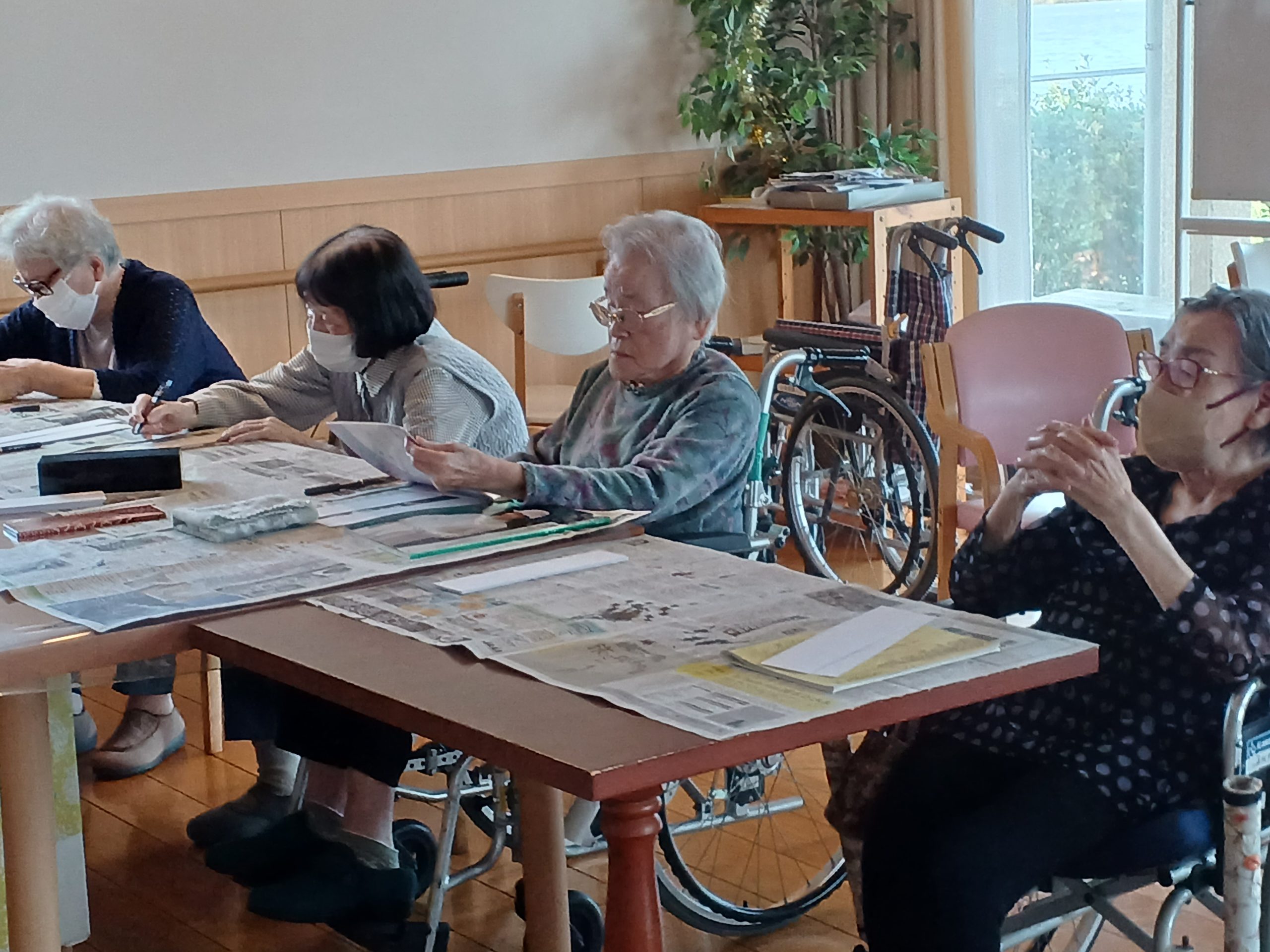 10月17日(金)に、サービス付き高齢者向け住宅ヴィラ湖水苑において、川柳会を行いました。皆さん季節のことや最近の出来事を、「五・七・五」でまとめられていました。今回の作品は、湖陵コミュニティセンターの文化祭並びに湖水苑文化祭の作品展に展示予定です。