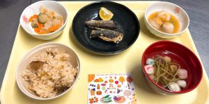 特別養護老人ホーム湖水苑、グループホーム湖水苑、サービス付き高齢者向け住宅ヴィラ湖水苑は、「自前調理」をしております。10月17日(金)に、食事から秋を感じていただこうと、秋の食材を取り入れた献立を提供しました。まつたけ御飯の香りも良く好評で、美味しいとお声をいただきました。