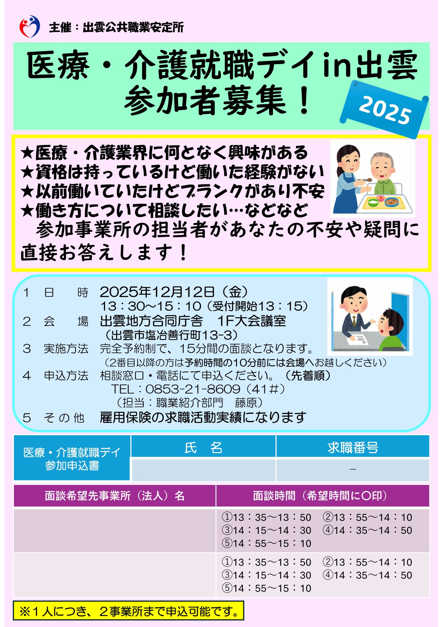 12/12(金) 医療・介護就職デイ㏌出雲のお知らせ