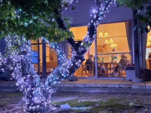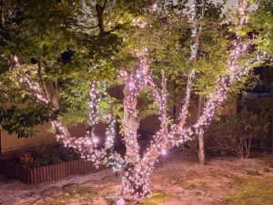 11月月6日(木)に、グループホーム湖水苑において、クリスマス用のイルミネーションを中庭の木に飾りつけをしました。色とりどりの中庭の光が食卓を彩り、ご利用者の方にも大変喜んで頂くことが出来ました。県道からも見えるように飾りつけをしたので、地域の方にもクリスマスの雰囲気を感じて頂けると嬉しいです。