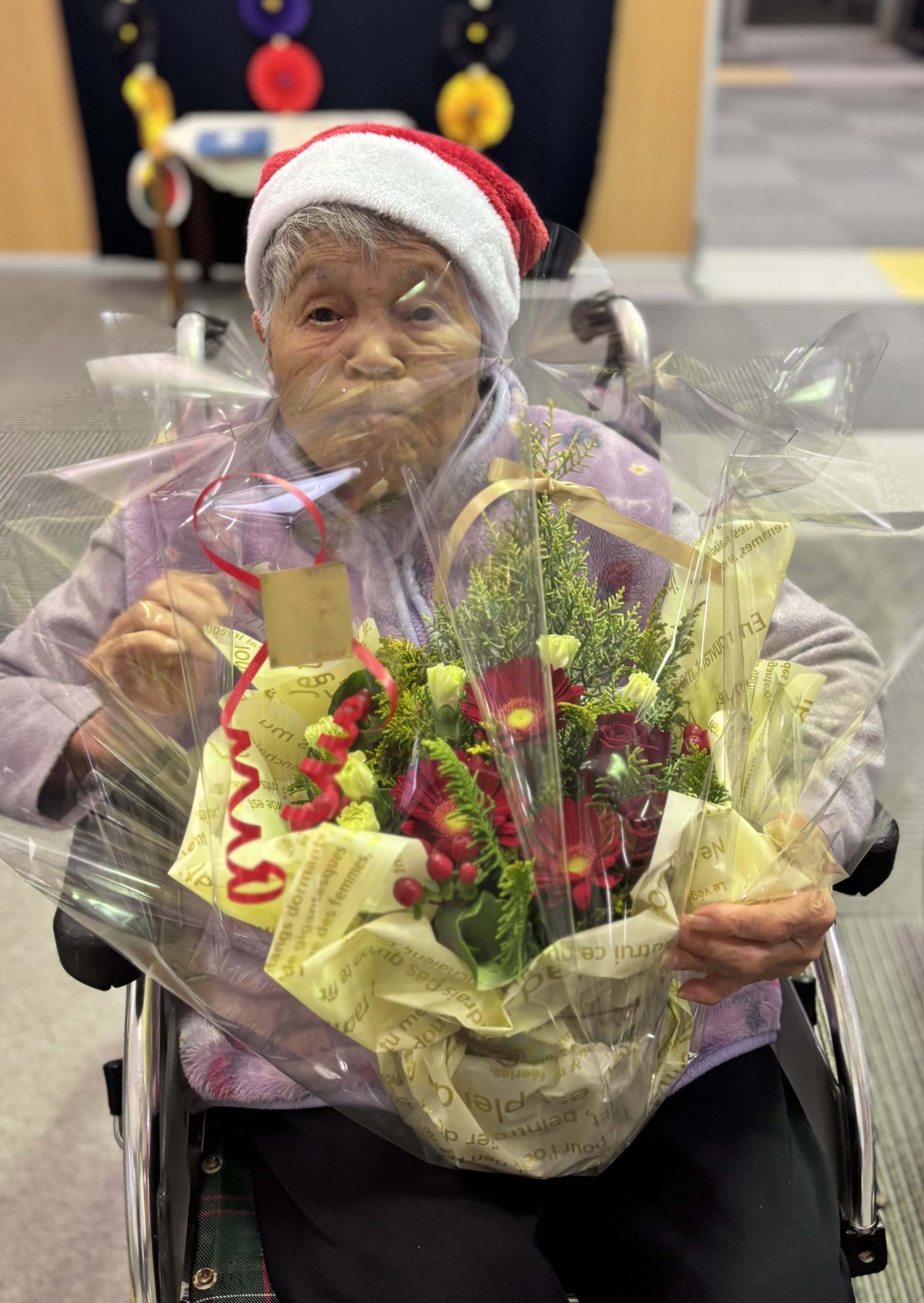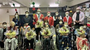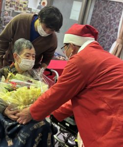 12月17日(水)に、社会福祉法人壽光会において、出雲レークヒルライオンズクラブの皆さんより花の鉢植えのプレゼントをいただきました。サンタクロースの衣装に身を包んだ皆さんと記念撮影を行い、入居者の皆さんもクリスマス気分に心が弾んだご様子でした。また、写真の花は、以前プレゼントいただいたシクラメンの花が毎年咲いているので、感謝の気持ちと共にお知らせいたしました。本当にありがとうございました。
