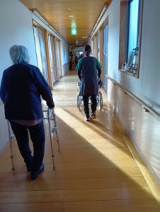 12月19日(金)に、特別養護老人ホーム湖水苑・サービス付き高齢者向け住宅ヴィラ湖水苑・グループホーム湖水苑の合同による総合訓練を行いました。出雲西消防多伎分署さん・和光電通さんに立ち会いを頂き、夜間想定で火災発生による消火訓練・通報訓練・避難訓練を行いました。日頃から複合火災受信機の位置・避難通路・非常口・消火器・消火栓等の場所の確認を行う事で、もしもの時に落ち付いた行動につなぐ事が出来ます。また、火災発生時にリーダーが周囲に指示を出す事で、効率的な動きに繋がる事が出来ます。今回の訓練を通して、非常時には連携を取り冷静に効率の良い行動が出来るよう努めていきたいと思います。