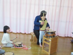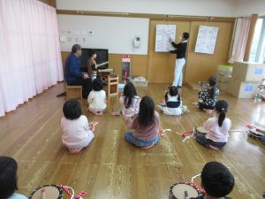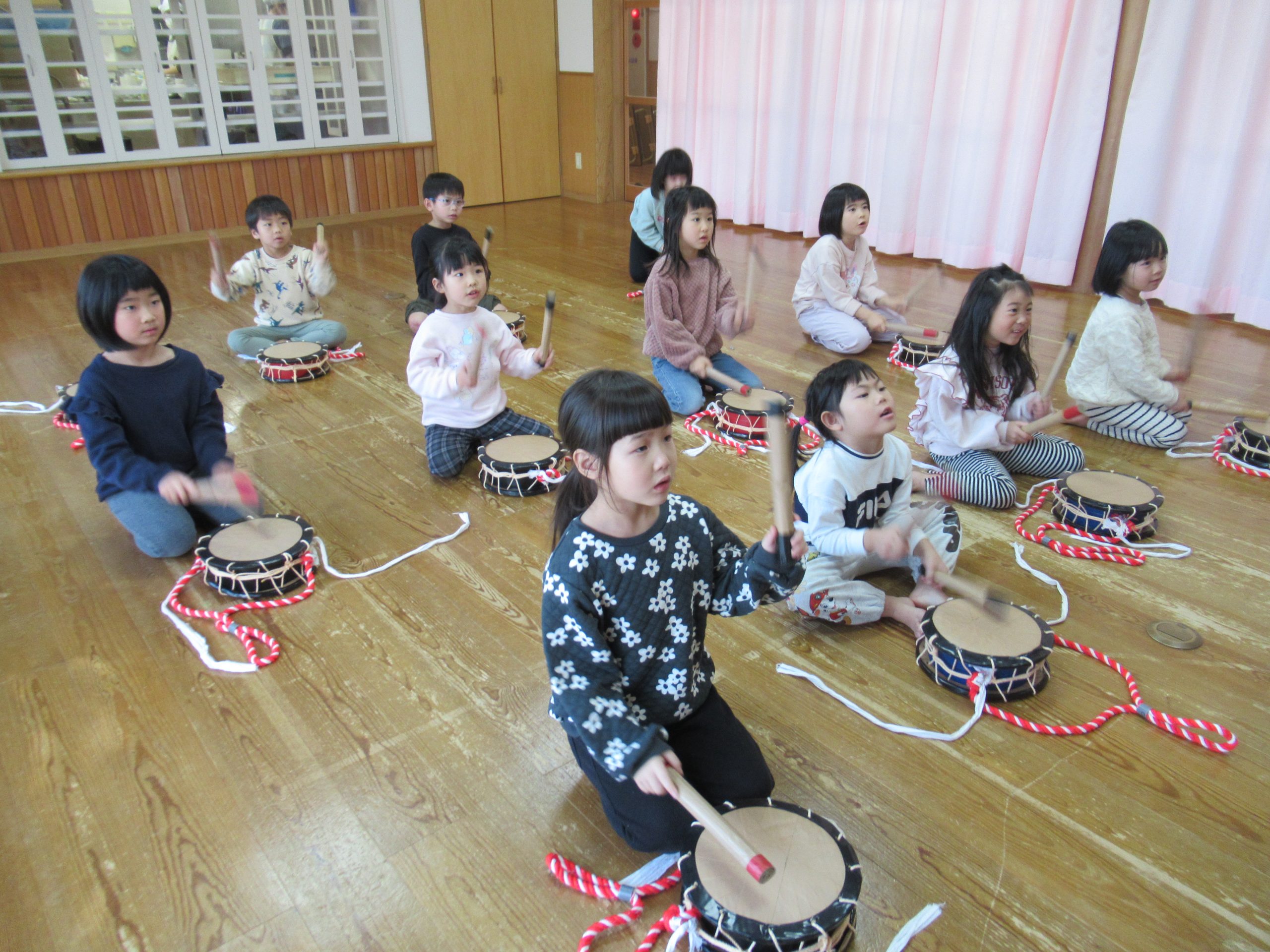 1月6日(火)に、たいしゃ保育園において、吉兆行事に向けての太鼓の練習を行いました。たいしゃ保育園では、毎年、旧正月にあわせて吉兆行事を行っています。今年も馬場同志会の皆さまに来ていただき、太鼓を習いました。1月24日(土)が本番です。