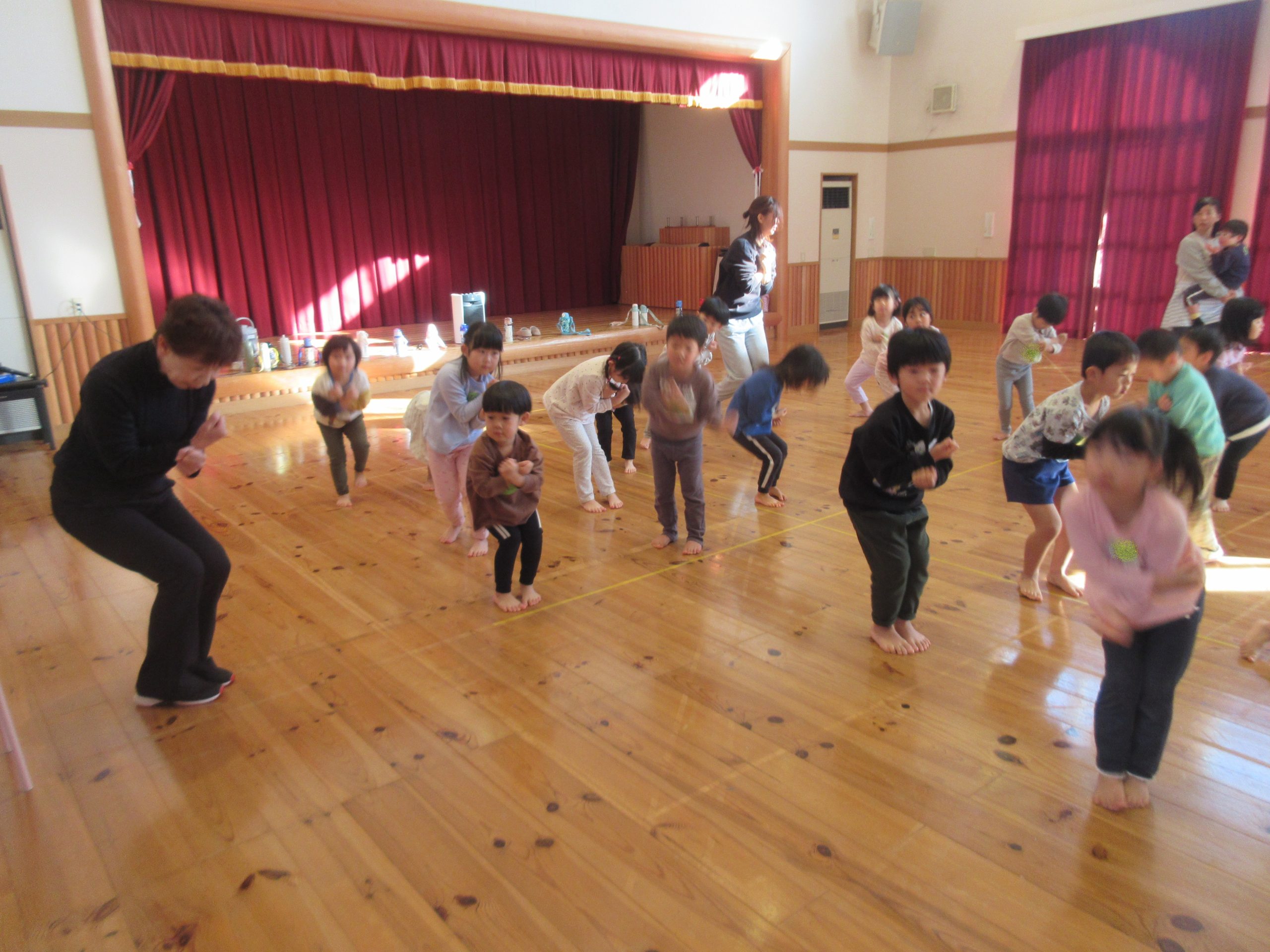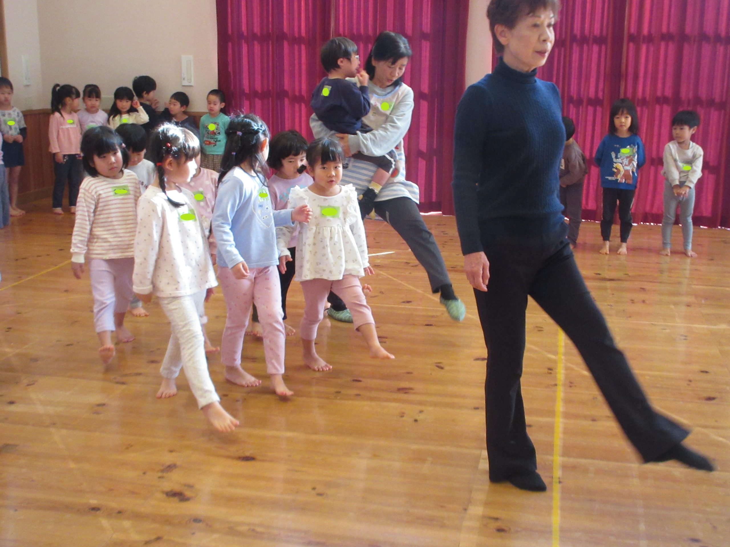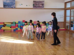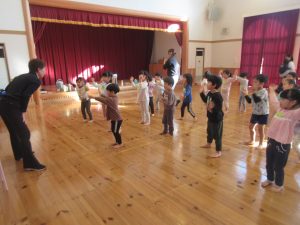1月6日(火)に、たいしゃ保育園において、ぱんだ組がダンスの練習がはじまりました。リズムのとり方・ステップの踏み方・動く時の態勢など、基本的なことを学びました。年末の発表会でぞう組さんのダンスを見て、子どもどもたちみんなダンスをやりたい気持ちにあふれていました。1年後の発表に向けて、木村先生とダンスを楽しく学んでいきたいです。