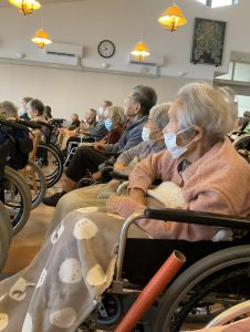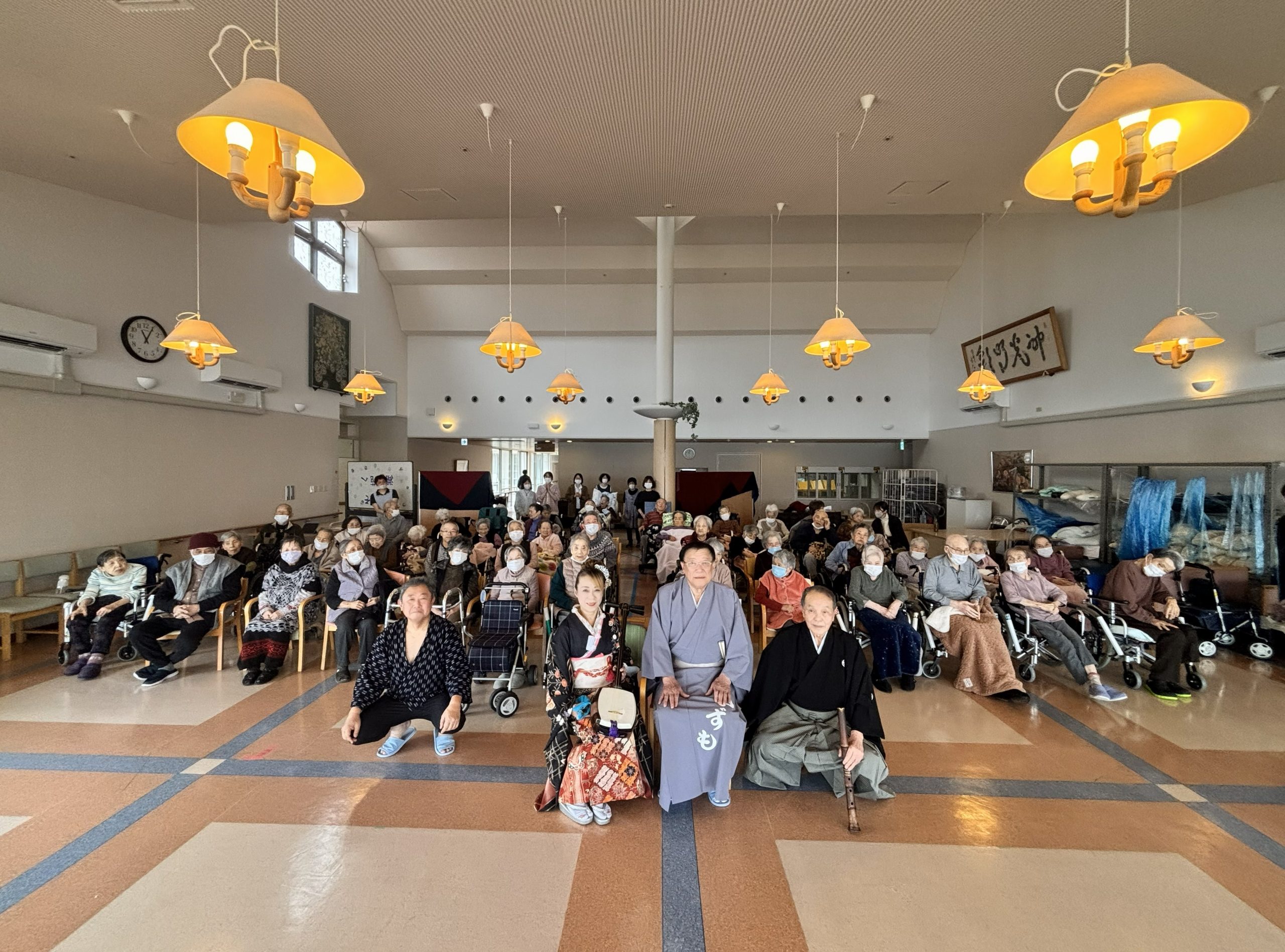 1月20日(火)に、湖水苑において、『水辺の小さなコンサート』を開催しました。今回は、吉川芸能者様より、安来節を演奏していただきました。演者の喜怒哀楽が表現された演技に、みなさま笑顔になっておられました。また、歌を口ずさみながら楽しく聞いておられました。三味線の演奏では、圧巻の演奏に聞き入っておられました。演奏終了後には、利用者様から「楽しくて元気出た」「安来節聞いてたよ!懐かしいね」など、暖かい言葉をいただけて職員共々コンサートを開催してよかった思っております。皆様、来月のコンサートも楽しみにされていました。