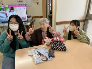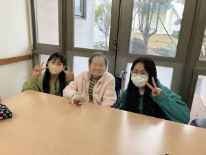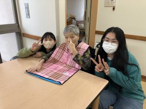 3月6日(金)に、特別養護老人ホーム湖水苑において、先日実習にこられたトリニティカレッジ出雲医療福祉専門学校の学生さんが遊びに来てくださいました。「久しぶりだねえ」「また会えて嬉しいよ」と、記念撮影をしながら入居者の皆さんも大盛り上がりでした。